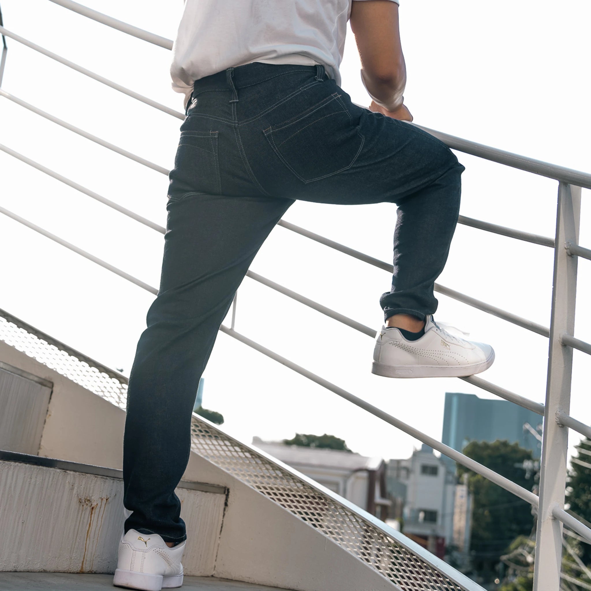 適度にストレッチの効いたデニムで快適な履き心地に。品質の高い福山デニムは丈夫で長くご愛用いただけます。