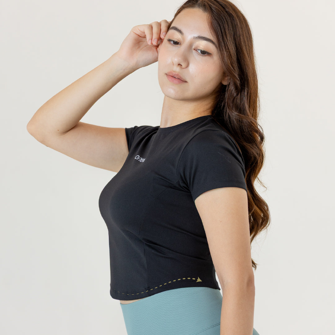 タイトフィットなクロップドTシャツ。ラウンドヘムとシームデザインで引き締まったシルエットを演出。