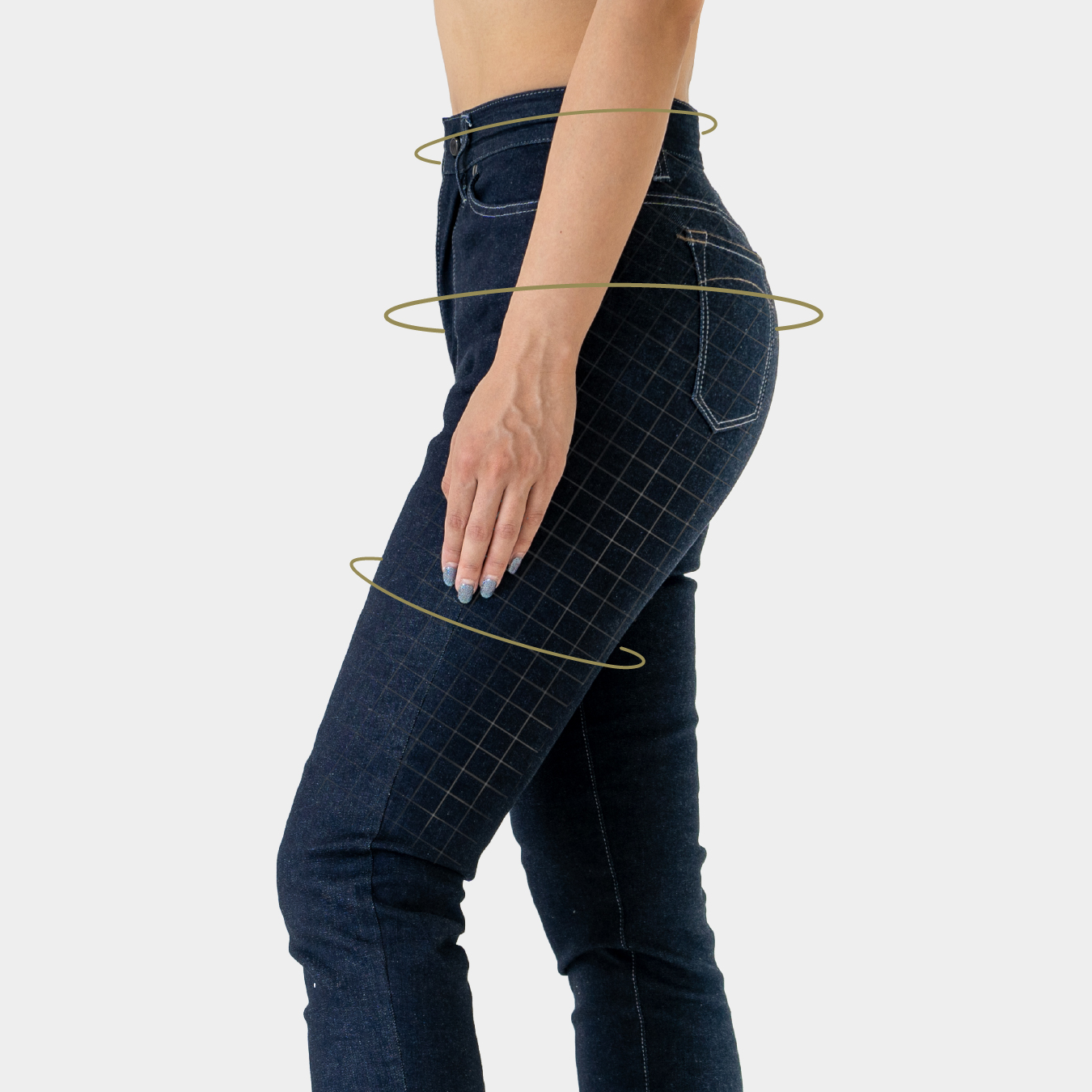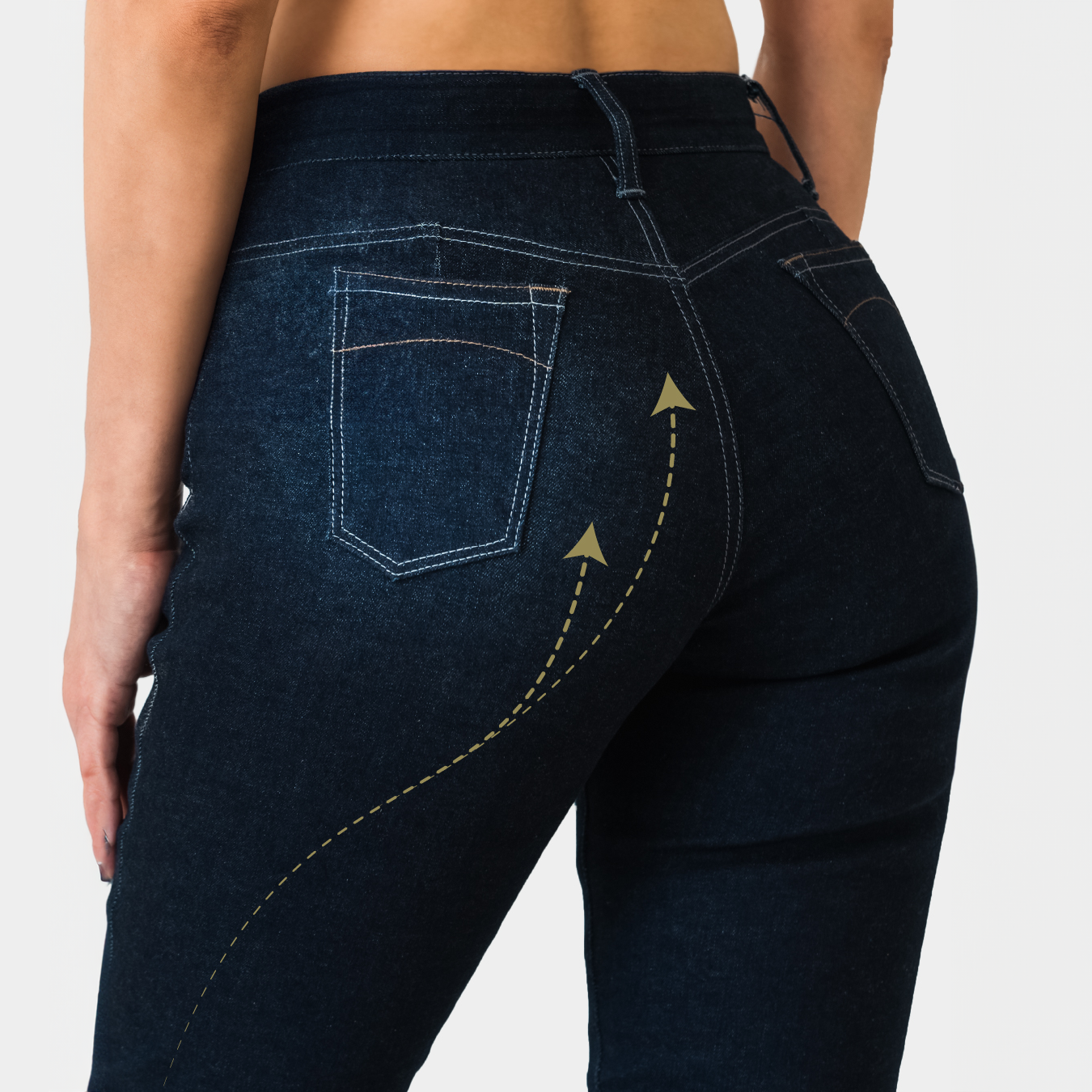 ポケットやヨークの高めに配置がすることで脚長効果を演出。 さらにパーツのサイズや角度によってヒップを立体的に引き立てます。